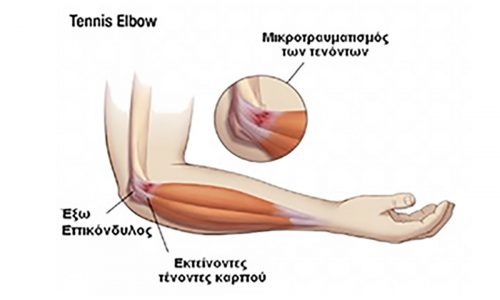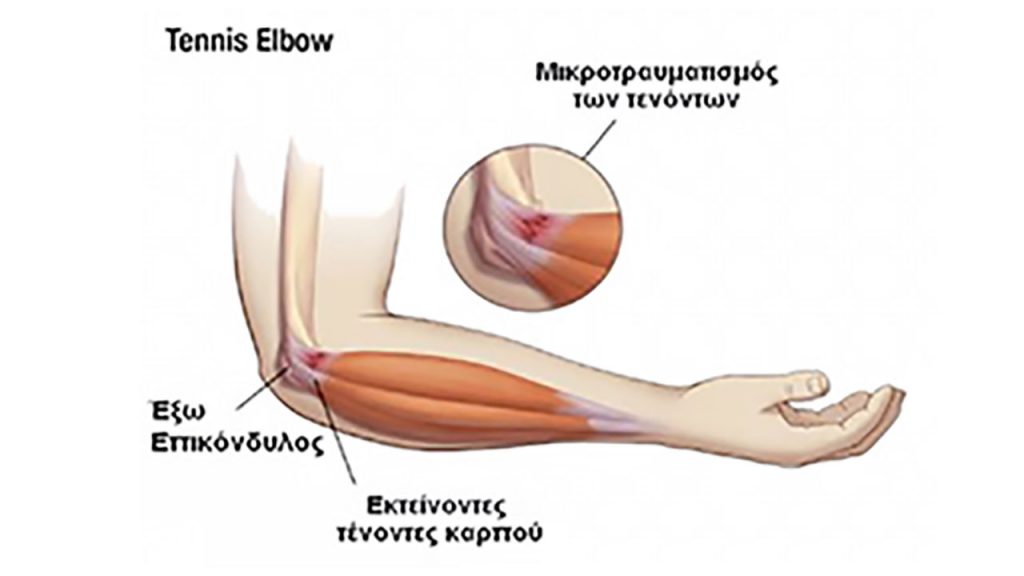 Η επανάληψη φυσιολογικών κατά τα άλλα κινήσεων, όπως η άρση βάρους με τον αγκώνα σε έκταση, το βίδωμα μιας βίδας ή το backhand χτύπημα στο τένις (εξ’ ού και η ονομασία αγκώνας τένις) προκαλεί μικροτραυματισμούς και μικρορήξεις στον κοινό τένοντα των εκτεινόντων και πιο συχνά στο βραχύ εκτείνοντα του καρπού.